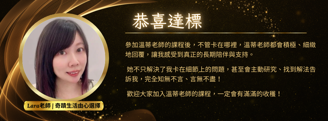 真的很感謝溫蒂老師的高效課程,也感謝大家的支持!